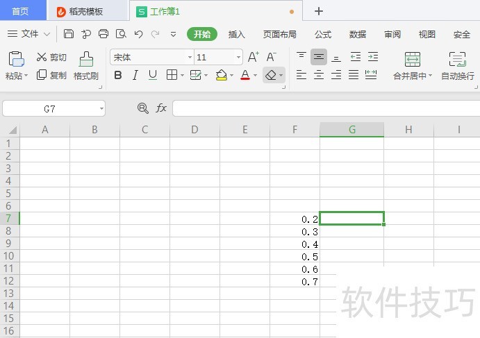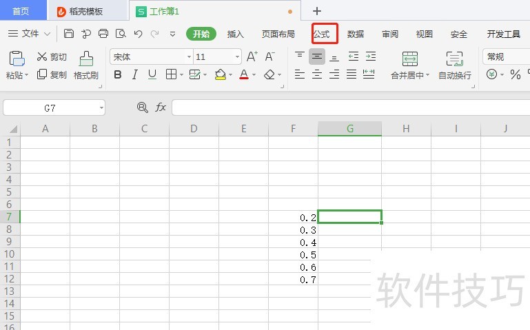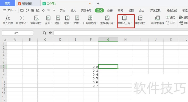 1、 选中G7空白单元格