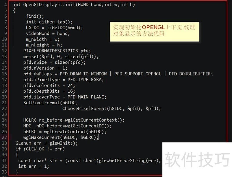 3、 实现初始化OPENGL上下文 纹理对象显示的方法代码