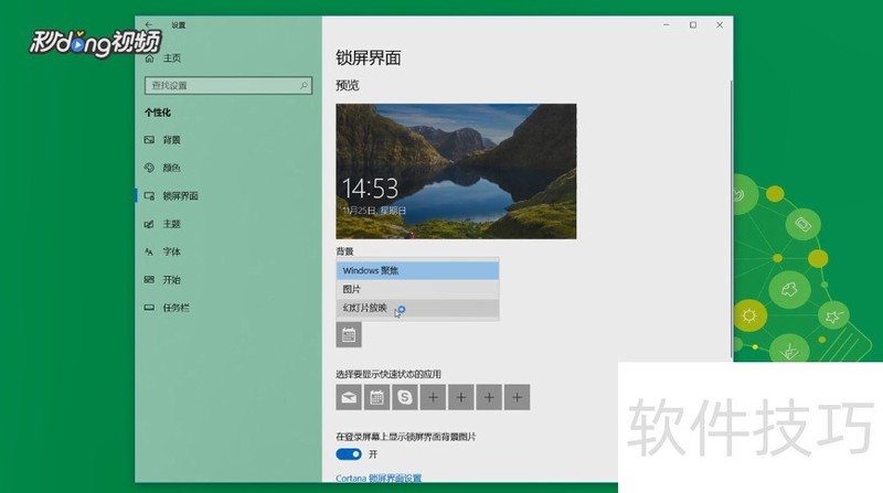 4、 在“背景”项目栏中,选择“幻灯片放映”。