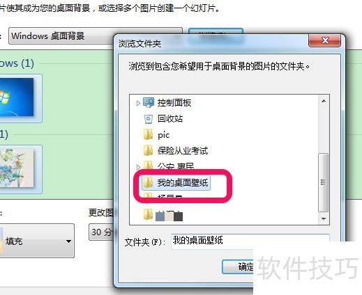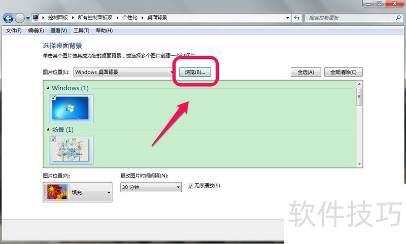 3、 在桌面背景页面,点击浏览,选择你准备好的要自动变换的图加进来,如图。