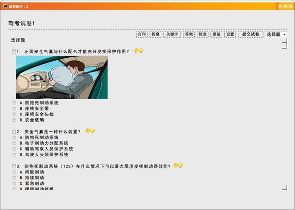 金速驾考是一款专业的驾考模拟软件,旨在帮助用户准备驾照考试。该软件提供了丰富的驾考理论试题资源,包括22个试卷、1092道选择题和1083道判断题,覆盖了驾考所需的所有知识点。用户可以通过这款软件进行模拟考试,体验真实的考试氛围,并加深对试题的印象。此外,金速驾考还支持资料备份功能,方便用户保存自己的学习进度和成果。使用方法简单易行,只需解压安装软件后打开即可开始使用。金速驾考是一款功能强大、易于使用且资源丰富的驾考模拟工具,对于正在准备驾照考试或者需要巩固驾考知识的用户来说是非常有益的。