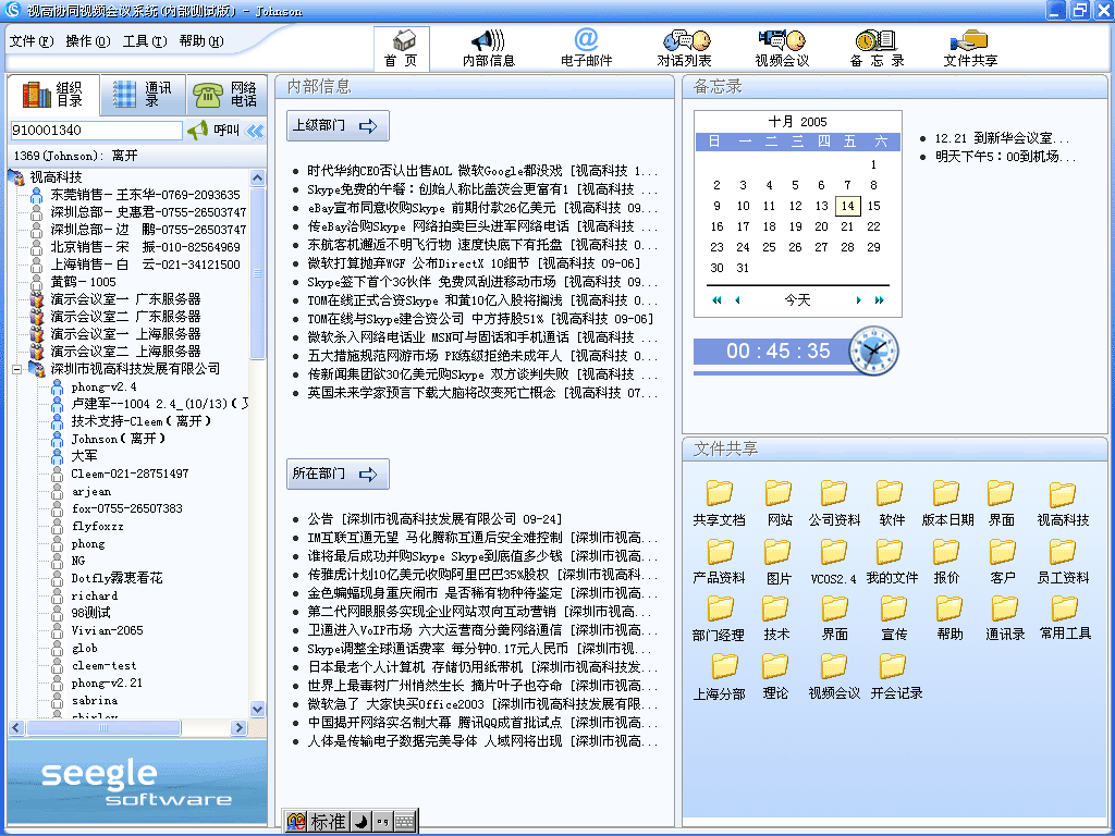 官方软件分类:OA协同大小:4.05 MB时间:2011-10-28软件介绍:oofile是一款由杭州九慧科技自主研发,定位于企业级应用的即时协同办公软件。通过oofile,企业或团队可以低 立即下载7.PoloMeeting视频会议软件 7.02