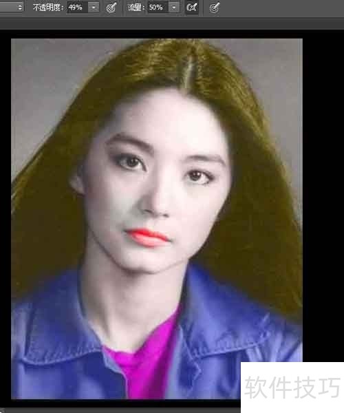 3、 ? ? ? ?将上方图标中“模式”设定为“颜色”,将不透明度降低到50%左右,图中为49%。