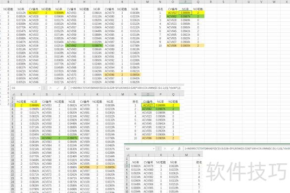 如果前10名中存在重复的NG数据,使用公式计算会变得复杂,而前三种方法影响不大。若出现NG率为0的情况,由于NG笔数也可能为零,导致后两个公式无法得出正确结果,因此采用前三种方法更为可靠和稳定,适用性更强,推荐优先使用。