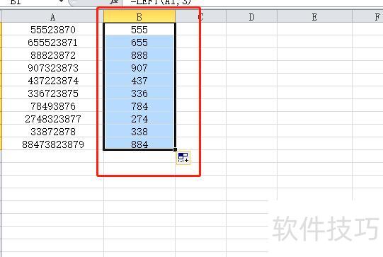 以Excel 2010为例,所示,有一列数据,需提取前几位数值。