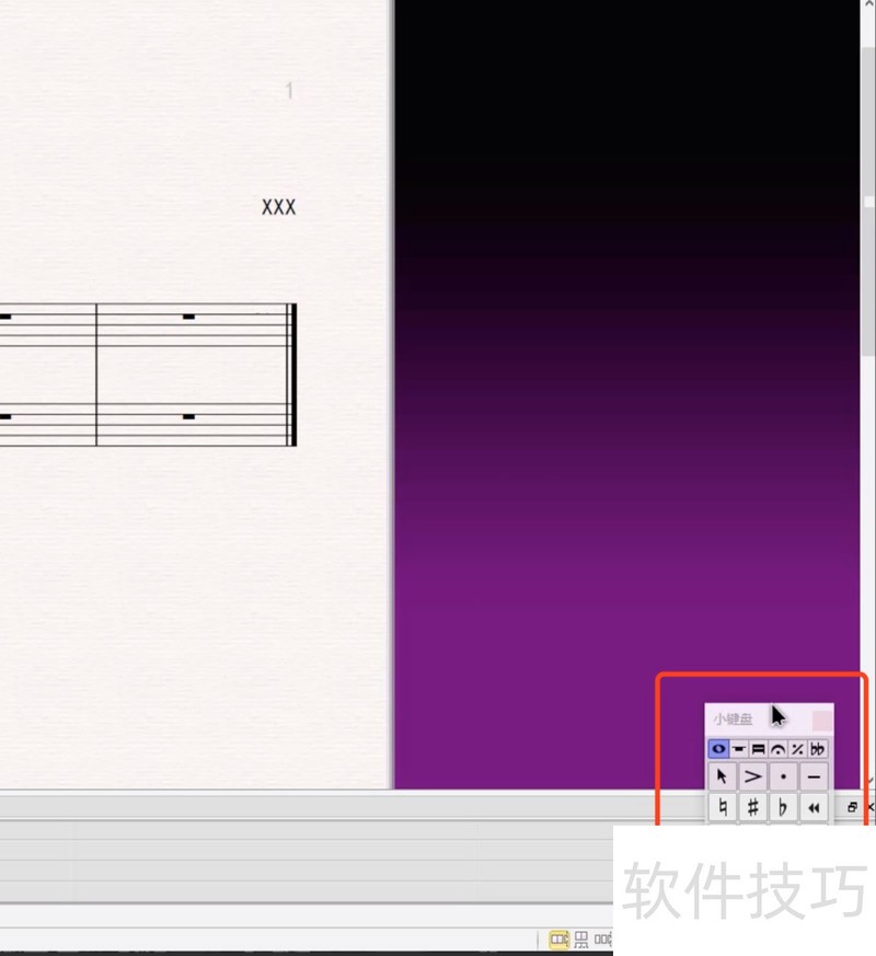 3、 在界面右购裹下角,这里是小键盘。以后我们在打谱的时候,可以直接选择小键盘上对应的音符时值,来进行制作。