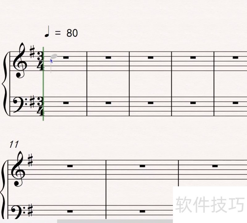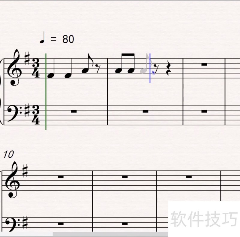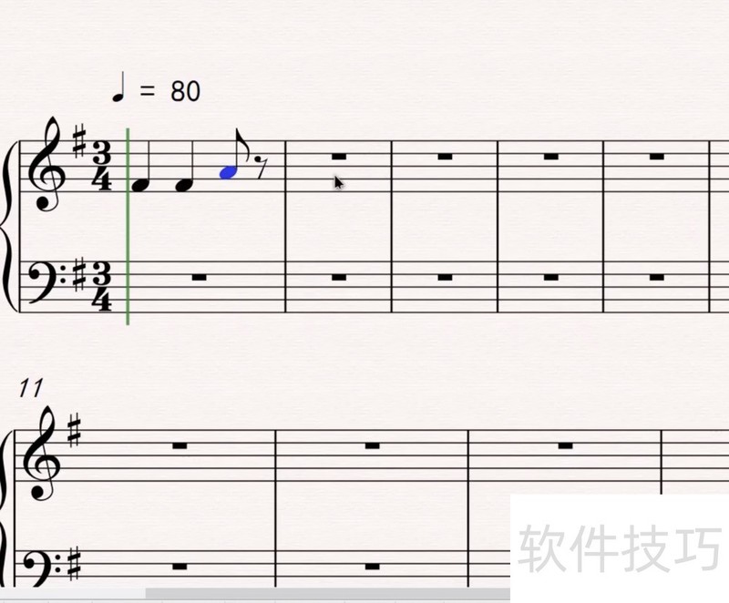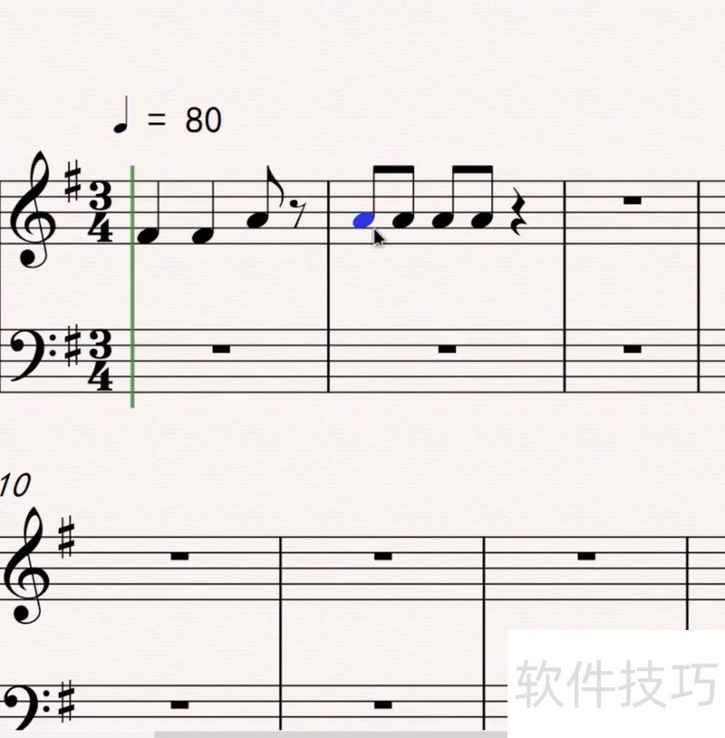 3、 当你并列地创建八分音符,十六分音符等等时,软件会十分人性化地根据记谱法,将两个音符的符干连接起来。