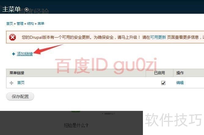 5、 在这里就可以对菜单进行增加的操作了,通过添加链接来进行,