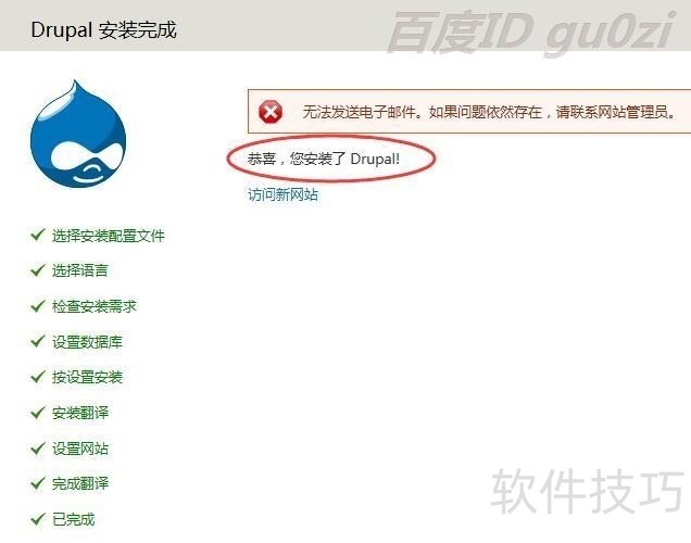 9、 经过以上设置,Drupal平台程序就安装完成了.