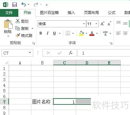 2、 点击EXCEL工具栏中开始旁边的图片百宝箱,进入添加图片的界面。3点击:选区中已有图片名称及点击选择图片路径(即图片储存位置)