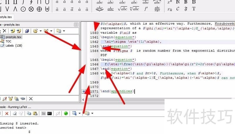 2、 我们将公式中的$号去掉一个,然后运行latex。