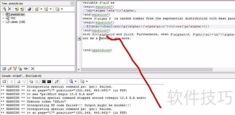 5、 这样系统就会自动显示对应的行号,这样就可以方便修改latex中的错误了。