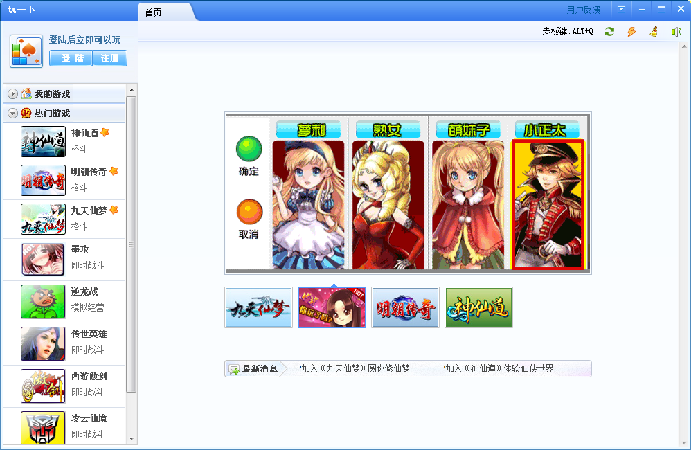 玩一下是一款完全免费的游戏客户端软件,内置各类精品休闲小游戏和网页游戏,您可以免费进行游戏。玩一下所有游戏都经过人工以及多重权威杀毒软件层层检测筛选,确保所有游戏无病毒无插件。玩一下提供“添加游戏”的功能,让您可以保存任何网站上好玩的游戏,创建属于自己的游戏收藏夹。一次注册,即可玩所有的网页游戏(休闲小游戏无需帐号,直接可玩);玩过的游戏会保存到用户账户下,在其他电脑上登陆可以同步玩过的游戏,不怕换了电脑找不到收藏的游戏玩了。支持代理功能,游戏多开,游戏加速,老板键,游戏静音(支持单个关闭)等功能。