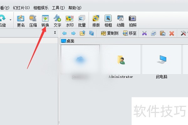 2、 进入到界面中在工具栏选择单击“转换”按钮