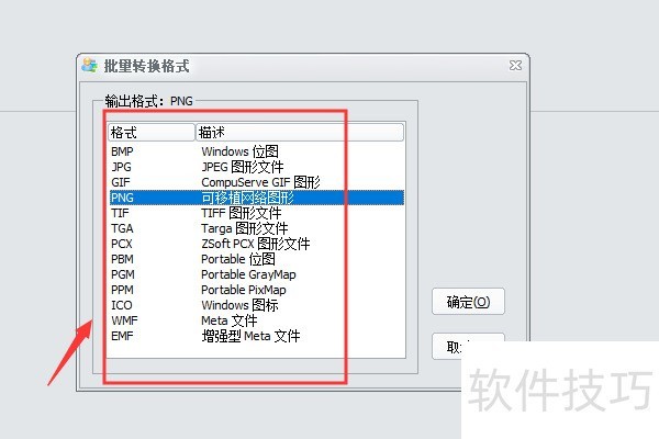5、 打开批量转换格式的对话框中选择需要转换的格式后再选择单击“确定”按钮