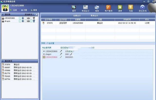众方电话会议系统是一款完全自助式的语音通讯产品,通过电脑进行操作管理。该系统支持多方远程会议,解决异地同步协作的困难。主持人可以对会议的参会人进行状态操作,包括外呼用户、挂断某用户、禁止某用户发言等。该系统的特点包括方便简洁、节约成本、提供多种无缝式通话、语音品质卓越、网络覆盖全球等。无论是在何地,只要有台电脑或是一部手机,都能随时随地召开或参与一场多方远程会议。同时,该系统还提供专业在线人工支持。