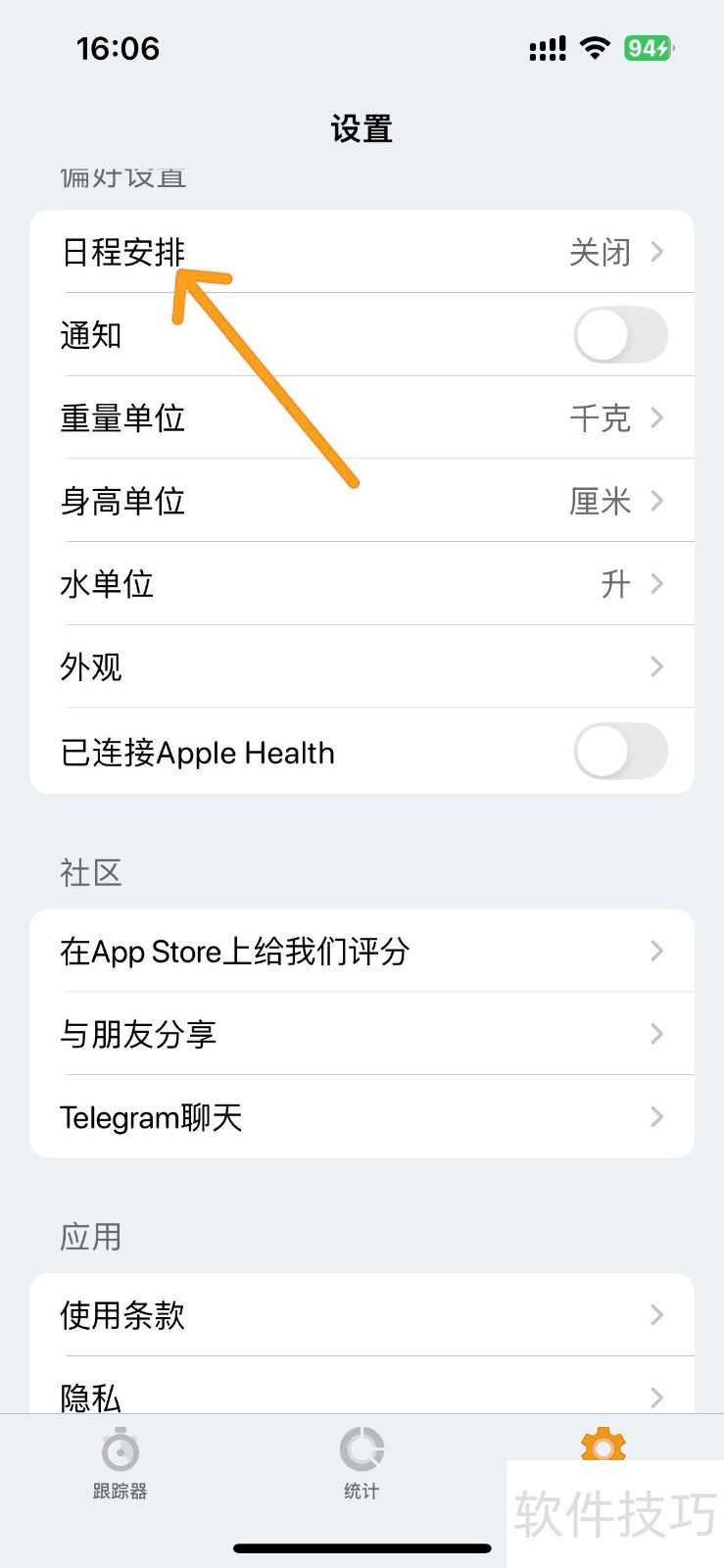 2、 在设置列表中,[选择并点击“日程安排”选项]。