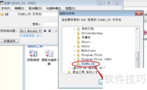 2、 双击上面一排中的图标 刻录VIDEO_TS,打开对话框,点击 右侧浏览按钮,找到视频所在的VIDEO_TS文件夹,单击确定。