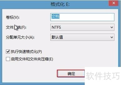 5、 可以在弹出格式化设置窗口进行设置“卷标”、“文件系统”和“分配单元大小”选项,还能进行“快速格式化”以及“启动文件和文件夹压缩”,选择完毕按下“确定”,如下图所示: