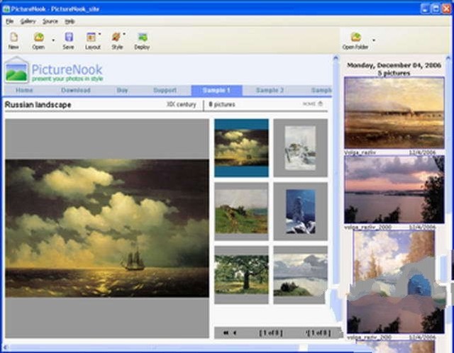 PictureNook是一款网络图库制作软件,用户可以使用该软件快速制作网络相册。用户只需选择图片和相册布局,然后按照网络相册开发向导进行操作,即可快速生成网络相册。在制作过程中,用户可以预览网络相册在浏览器中的显示效果。此外,该软件还提供了多种相册模板和可视化风格供用户选择,节省了制作时间。