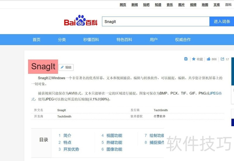 1、 通过网络百科,可以了解snagit的基本情况。然后就是下载好软件,开始使用。