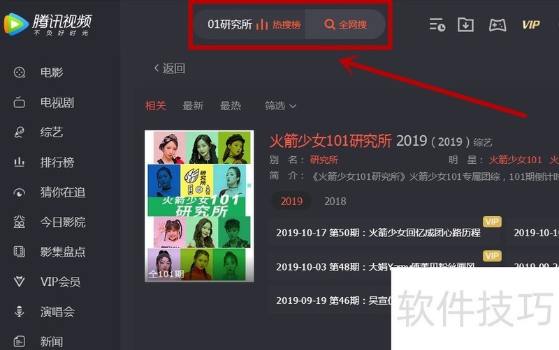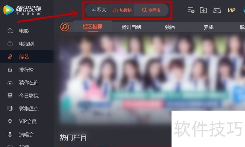 1、 打开并登录腾讯视频,点击“搜索框”;