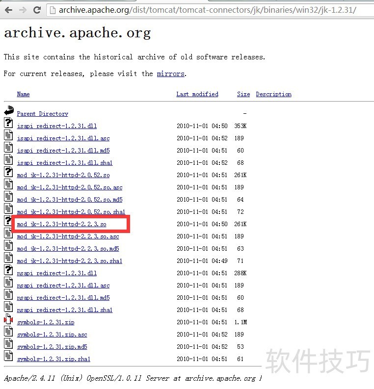 3、 ?把mod_jk-1.2.31-httpd-2.2.3手工copy进我们的Apache安装目录的modules目录下,这个文件的全名叫: mod_jk-1.2.31-httpd-2.2.3.so,我将文件名修改为mod_jk.so