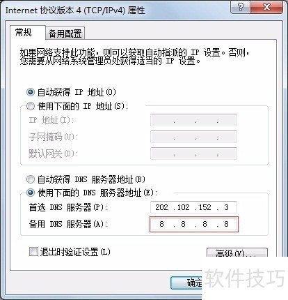 4、 解决此问题,首先添加新的DNS地址8.8.8.8。这样一方面,可以解决仅仅配置单个DNS服务,若DNS服务出现问题,则会出现域名无法解析从而打不开Apache官网的问题。另一方面,此DNS服务为谷歌的DNS服务,可以访问更多的网址。