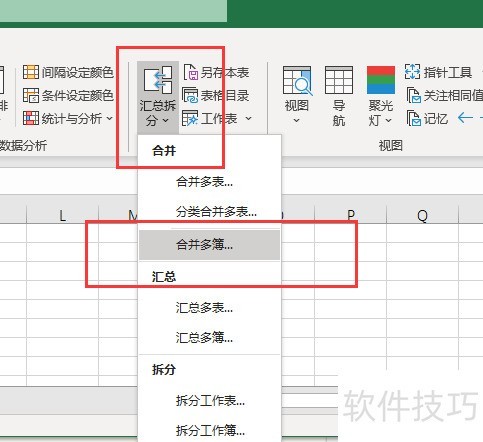 3、 然后点击【汇总拆分】,选择【合并多簿】
