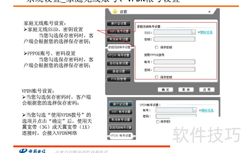 6、 系统设置,家庭无线账号VPDN账号设置