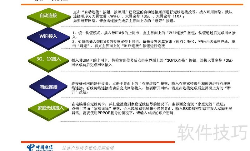 天翼宽带客户端软件功能丰富,无论是网络接入还是应对各类问题都有相应操作方法。掌握这些操作技巧,能让用户更好地使用该软件畅享网络服务。