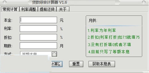 官方软件分类:计算器大小:747 KB时间:2016-08-24软件介绍:贷款综合计算器是一款适合贷款按揭买房的用户使用的贷款计算器,该住房按揭贷款计算器使用方便,操作简单, 立即下载以上是小编精心挑选的最佳应用软件推荐列表,旨在为读者提供实用信息。这份热门软件排行榜将协助大家做出选择,并鼓励有需求的用户下载体验。