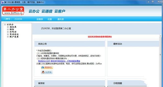 第二办公室客户端是一款一站式通信及办公服务平台,提供短信收发、打电话功能和电话会议功能。通过使用该软件,用户可以节省40%的通信费用。这款软件是互联网常用的工具之一。