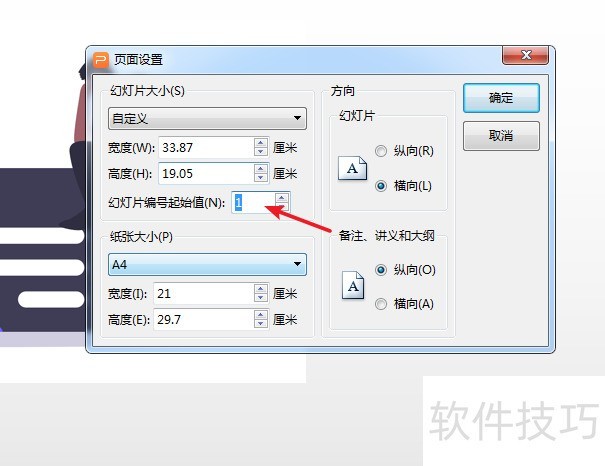 7、 其中“幻灯片编码起始值“为1,把它修改成0。