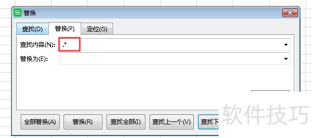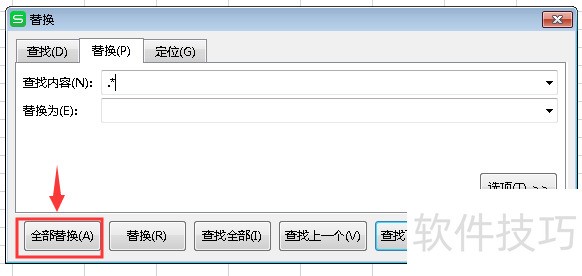 4、 查找内容输入.*,替换内容为空白