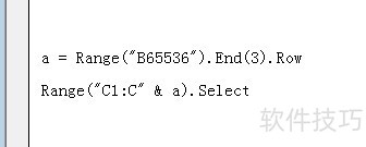 4、 实例:Sub aaa()?Dim aa = Range("B65536").End(3).RowRange("C1:C" & a).SelectEnd Sub