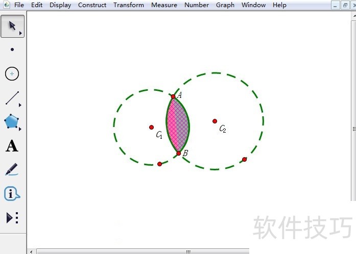 1、 作为受广大教师青睐的辅助教学软件,几何画板有着强大的功能,不仅可以画几何图形,还可以让图形动起来,比传统的黑板式教学方便很多,甚至可以说更进一步。具体绘图步骤如下:步骤一 画相交两圆。选择左侧侧边栏“圆工具”,然后在工作区域任意画两个圆,使其相交,交点为A、B,如下图所示。