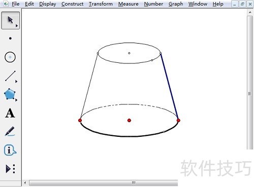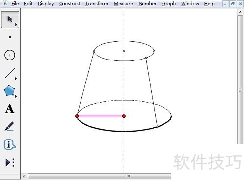 5、 三、美化圆台此时的圆台看上去有一些多余的线条我们选择这些线条单击右键选择“隐藏线段”,即可去掉。此时在右侧边还少一条线,我们可以调用“线段直尺工具”画一条线即可。