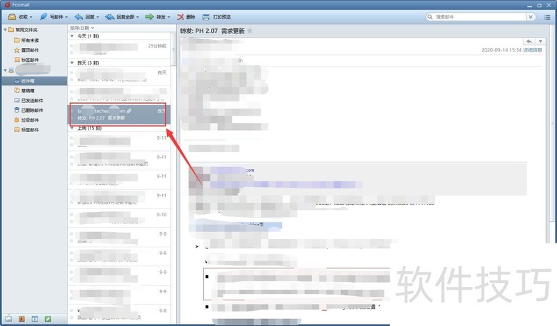 3、 找到需要转发的邮件,如下图: