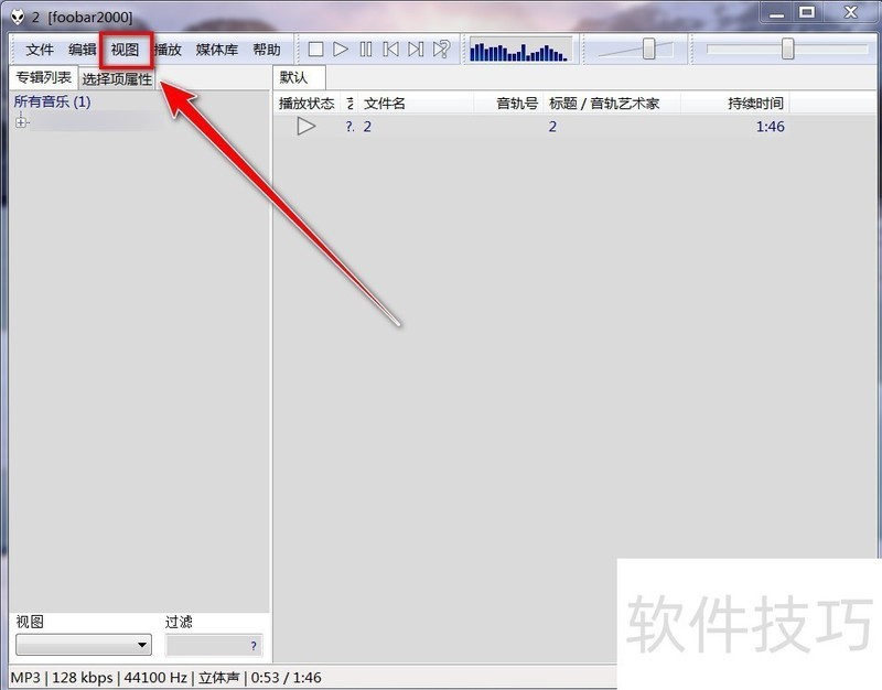 2、 第二步:在foobar2000窗口中,点击菜单栏中的“视图”。