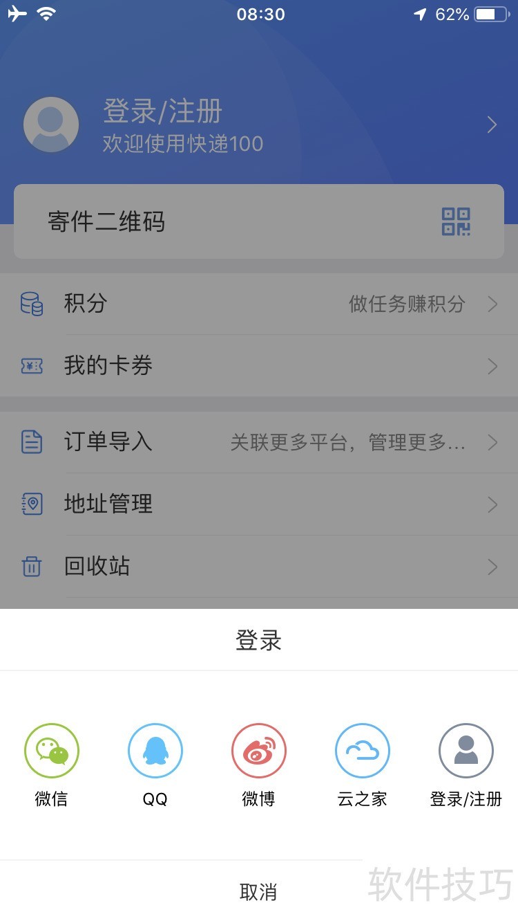 3、 一般的APP首次登陆都是需要的,这个APP和阿里巴巴的菜鸟裹裹有点像也是快递类的APP。