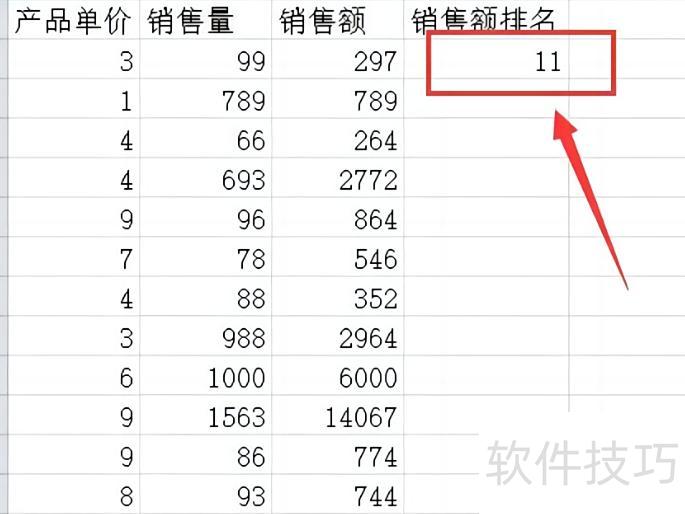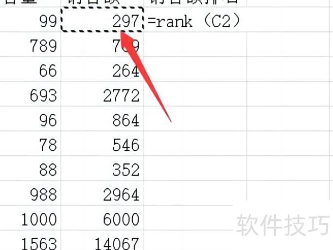 Excel排名函数公式如下所示