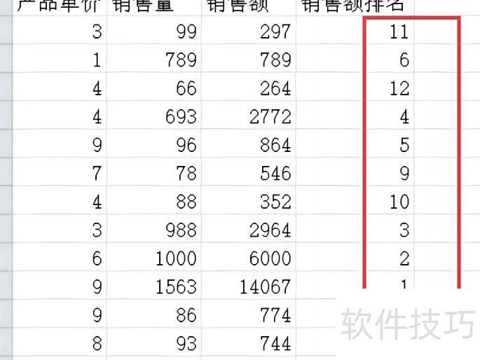 选中排名列的第一个单元格。