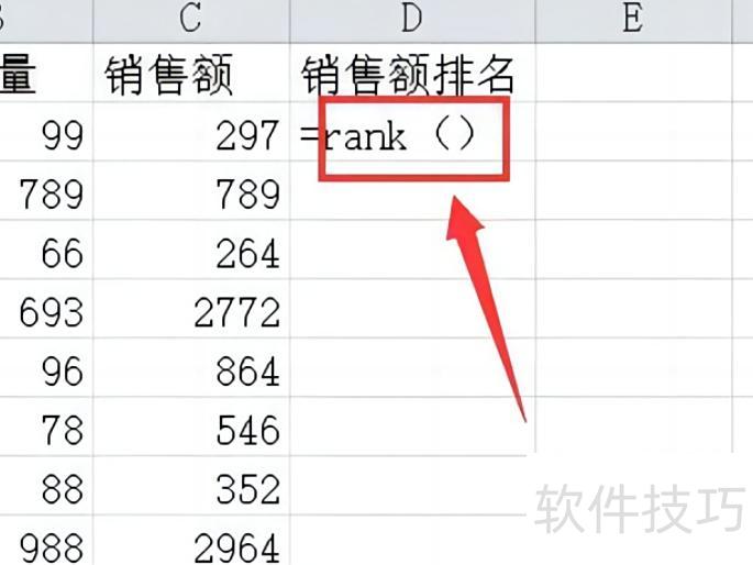输入rank函数,格式为:rank()。