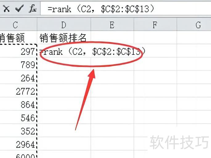 在Excel中,可使用RANK函数进行排名计算。该函数的语法为:=RANK(数值, 引用区域, 排序方式)。其中,第三个参数用于指定排序方式,若省略则默认为0,表示降序排列。例如,要对F3单元格的值在F3至F40区域中进行排名,可输入公式:=RANK(F3,$F$3:$F$40)。