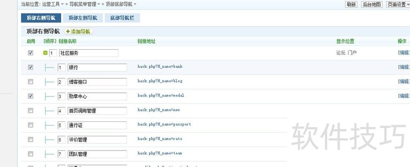 6、 选择打开顶部左侧导航,然后将十分钟建站、轻松转换、站长沙龙这三外链接选中并删除;