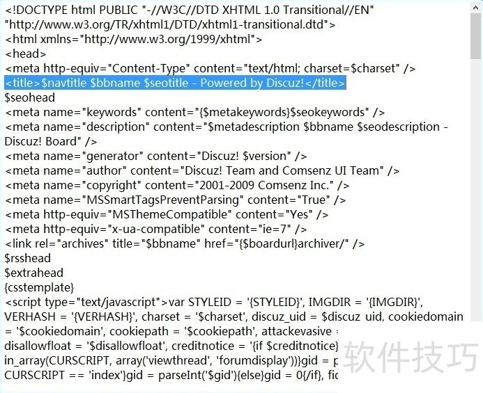 2、 打开所有搜索到的head、header和foot、footer文件,使用文档编辑软件打开。3在head、header文件中寻找,可能有些head、header不含有。<title>... - Powered by Discuz!</title><title>... - Powered by PHPWind</title>您可以选择删除?- Powered by Discuz!或?- Powered by PHPWind也可以进行更改。