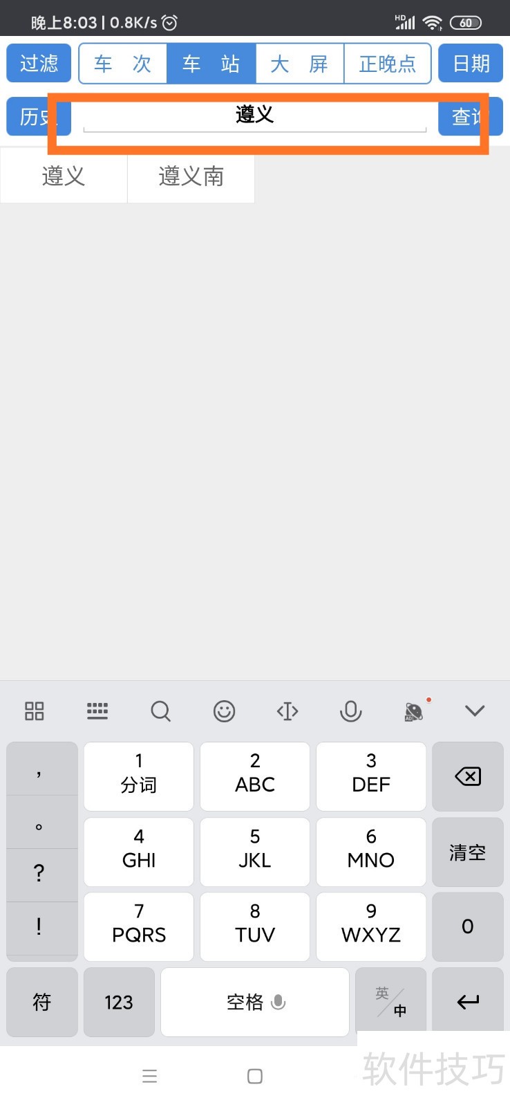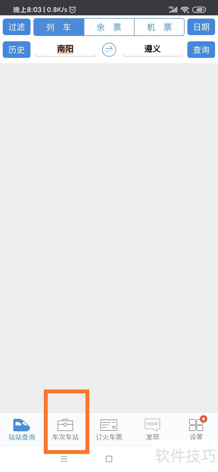 3、 进入后如图,我们选择车站,然后输入想要查询的车站,例如遵义,然后系统就提示遵义、遵义南,我们点击遵义。?