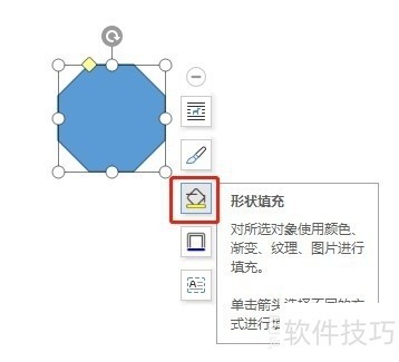 5、 点击选中文档中的八边形,点击右边的【形状填充】图标