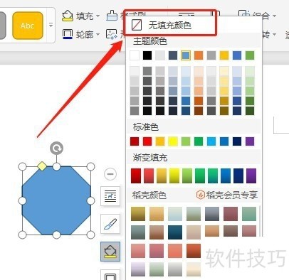在Word中,如何实现插入的八边形不填充颜色?